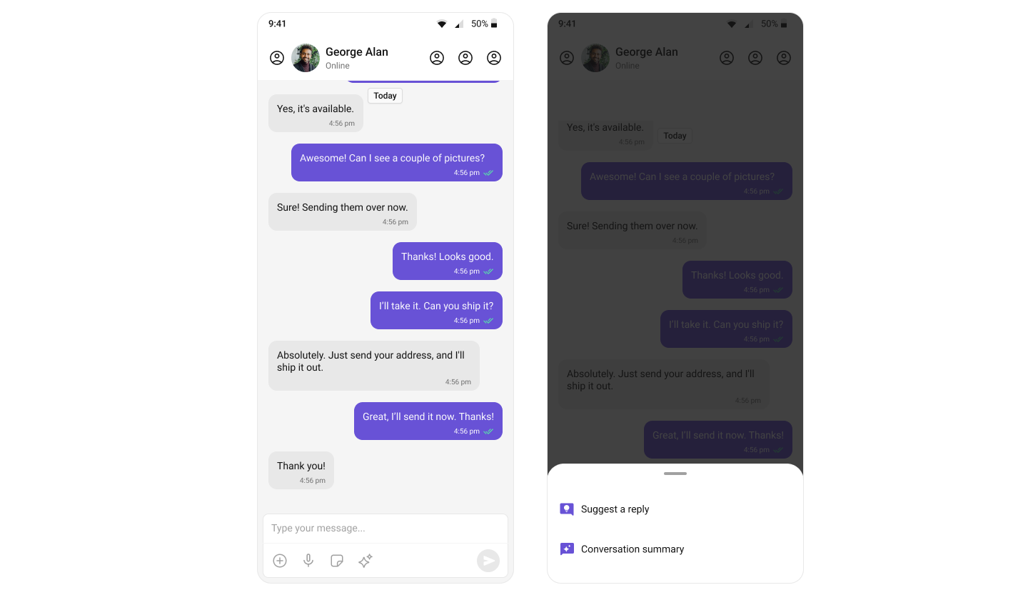 Smart Replies are AI-generated responses to messages. They can predict what a user might want to say next by analyzing the context of the conversation. This allows for quicker and more convenient responses, especially on mobile devices. For a comprehensive understanding and guide on implementing and using the Smart Replies, refer to our specific guide on the Smart Replies. Once you have successfully activated the Smart Replies from your CometChat Dashboard, the feature will automatically be incorporated into the Action sheet of MessageComposer Component of UI Kits.