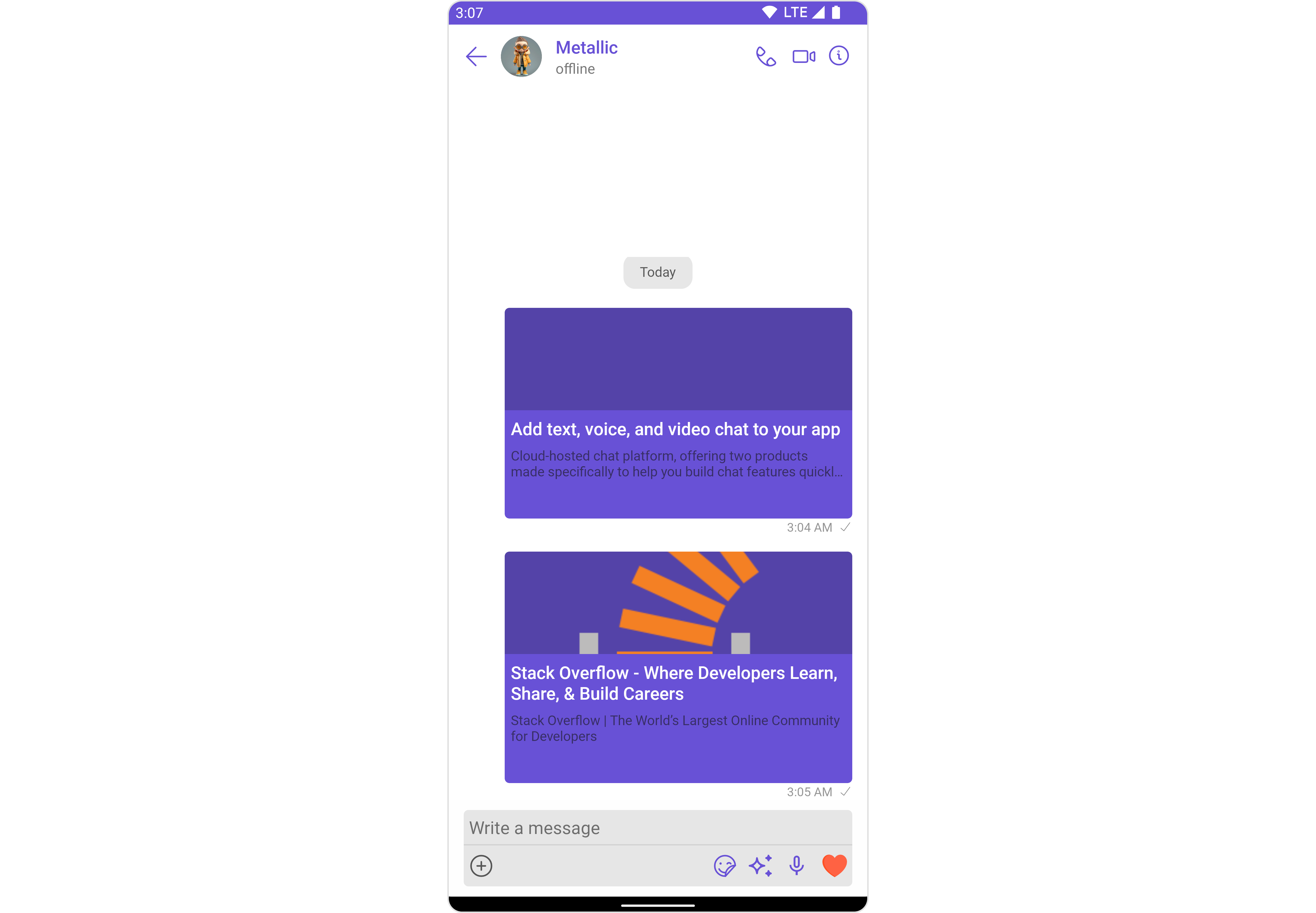 The Link Preview extension provides a summary of the URL shared in the chat. It includes the title, a description, and a thumbnail image from the web page. For a comprehensive understanding and guide on implementing and using the Link Preview Extension, refer to our specific guide on the Link Preview Extension. Once you have successfully activated the Link Preview Extension from your CometChat Dashboard, the feature will automatically be incorporated into the Message Bubble of MessageList Component component of UI Kits.