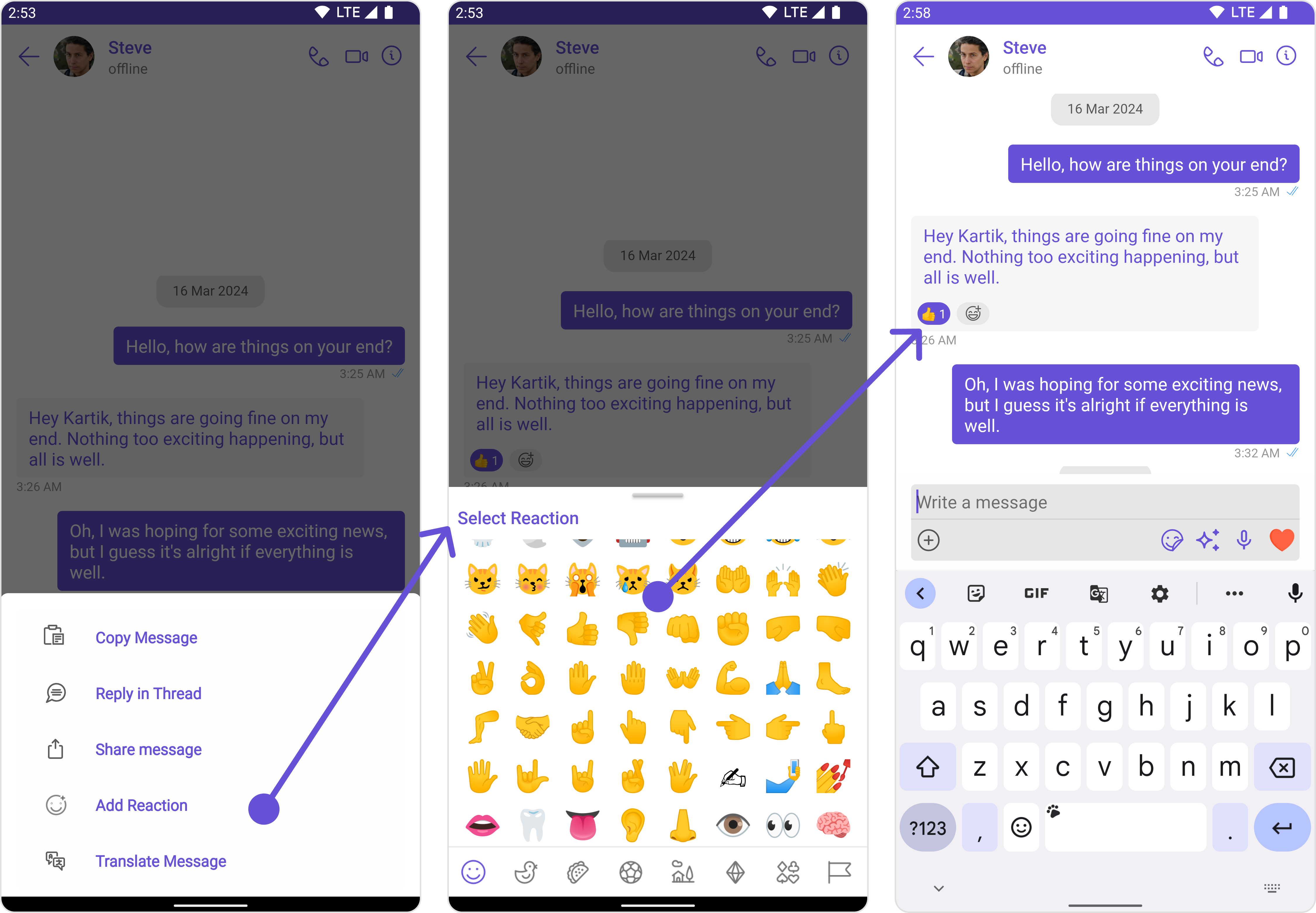 Message Reactions extension lets users express their emotions towards a message by choosing from a range of emojis. It provides a quick way to respond to any shared message. For a comprehensive understanding and guide on implementing and using the Message Reactions Extension, refer to our specific guide on the Message Reactions Extension. Once you have successfully activated the Message Reactions Extension from your CometChat Dashboard, the feature will automatically be incorporated into the Action Sheet of MessageList Component component of UI Kits.