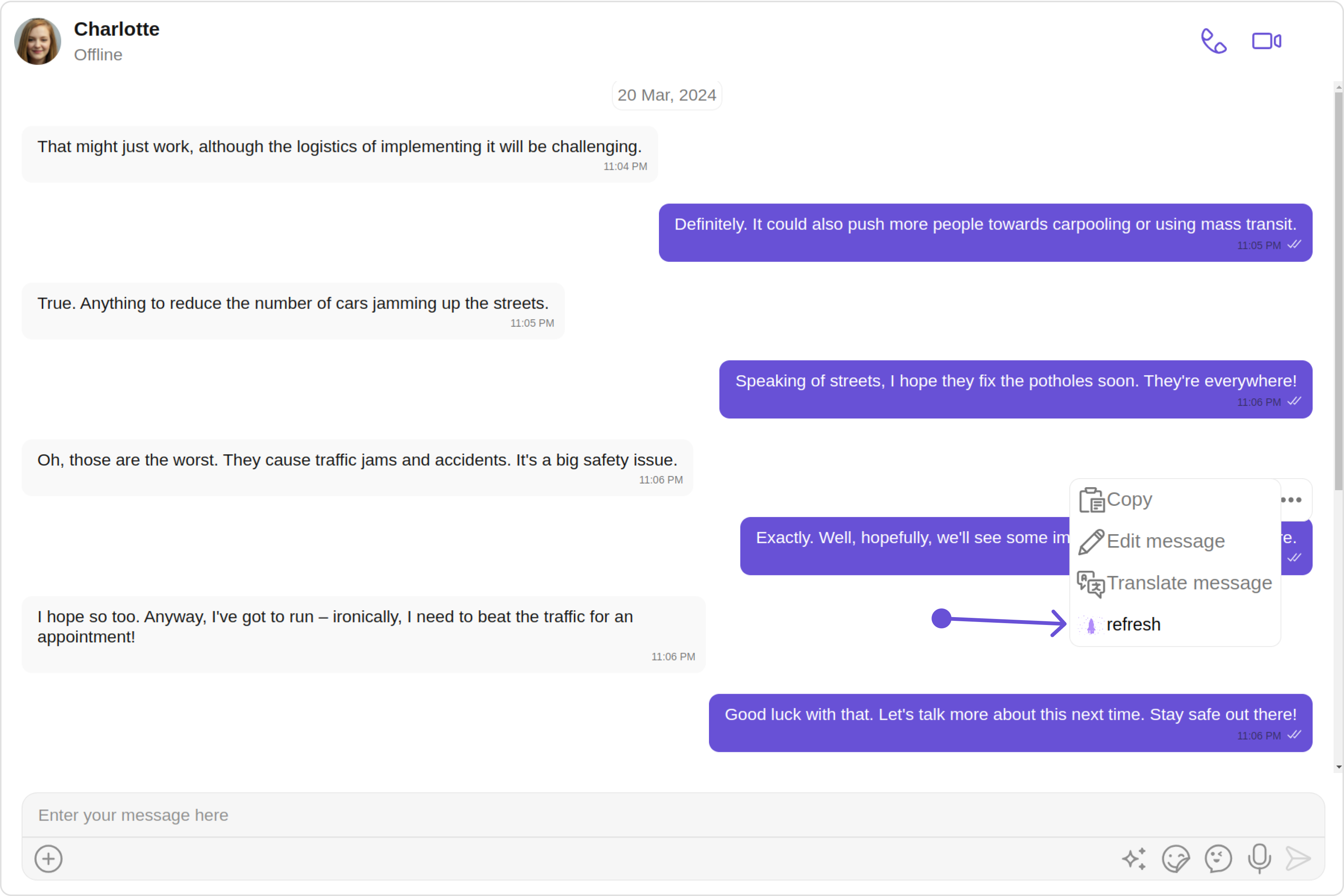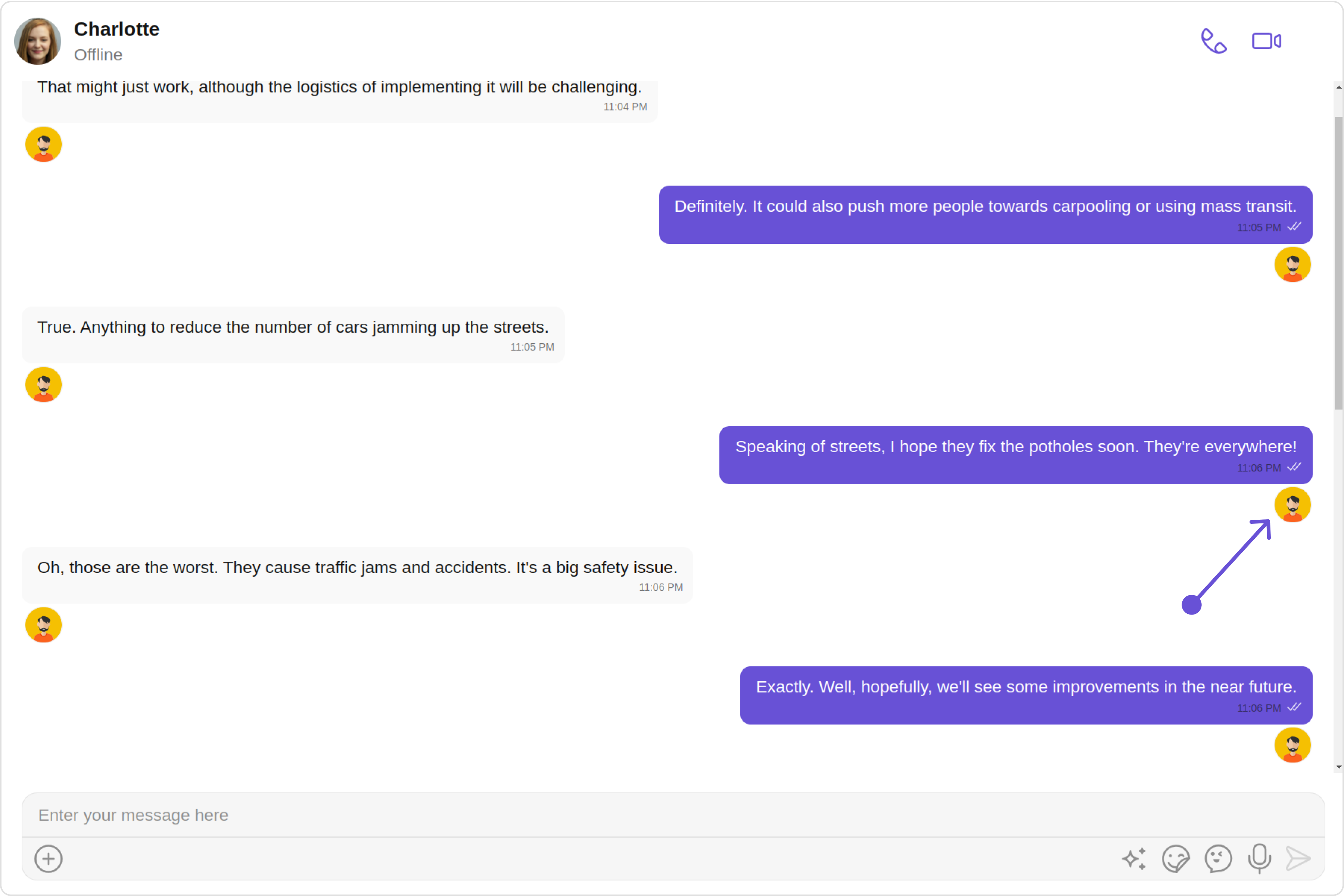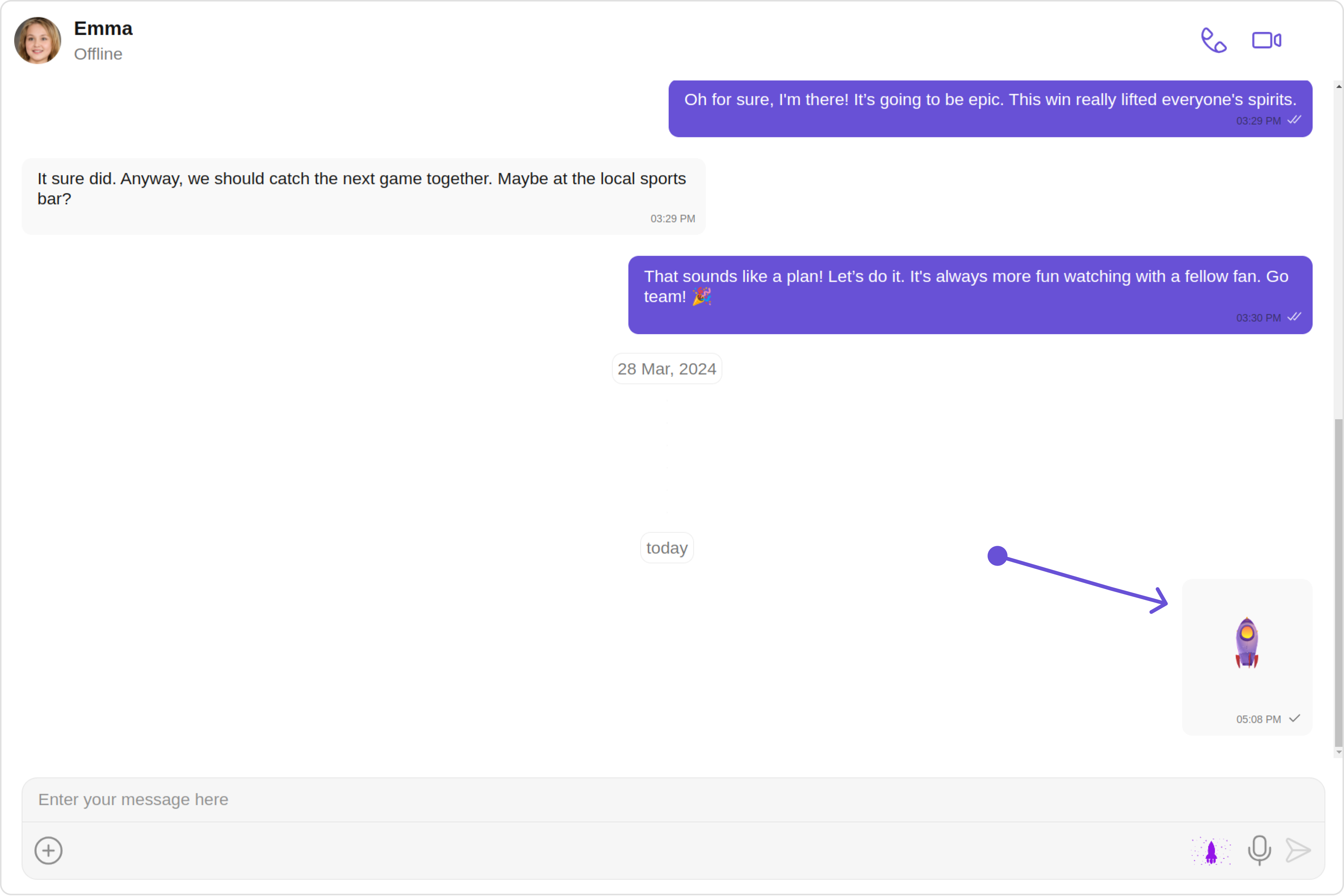 2. Header view: This displays the sender’s name and is especially useful in group chats where multiple users are sending messages.