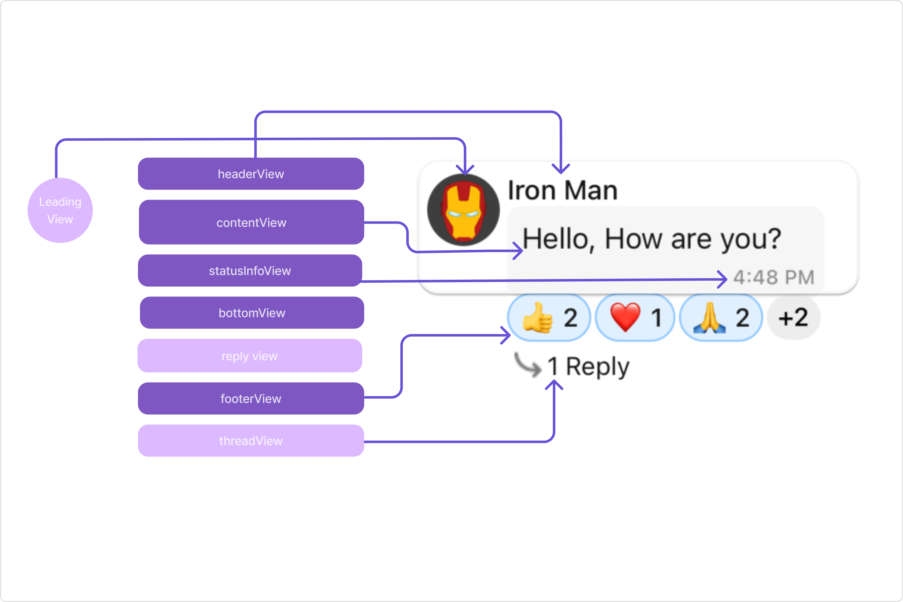3. Reply view: This view can be used to extend the MessageBubble with additional elements. It’s typically placed above the Content view.