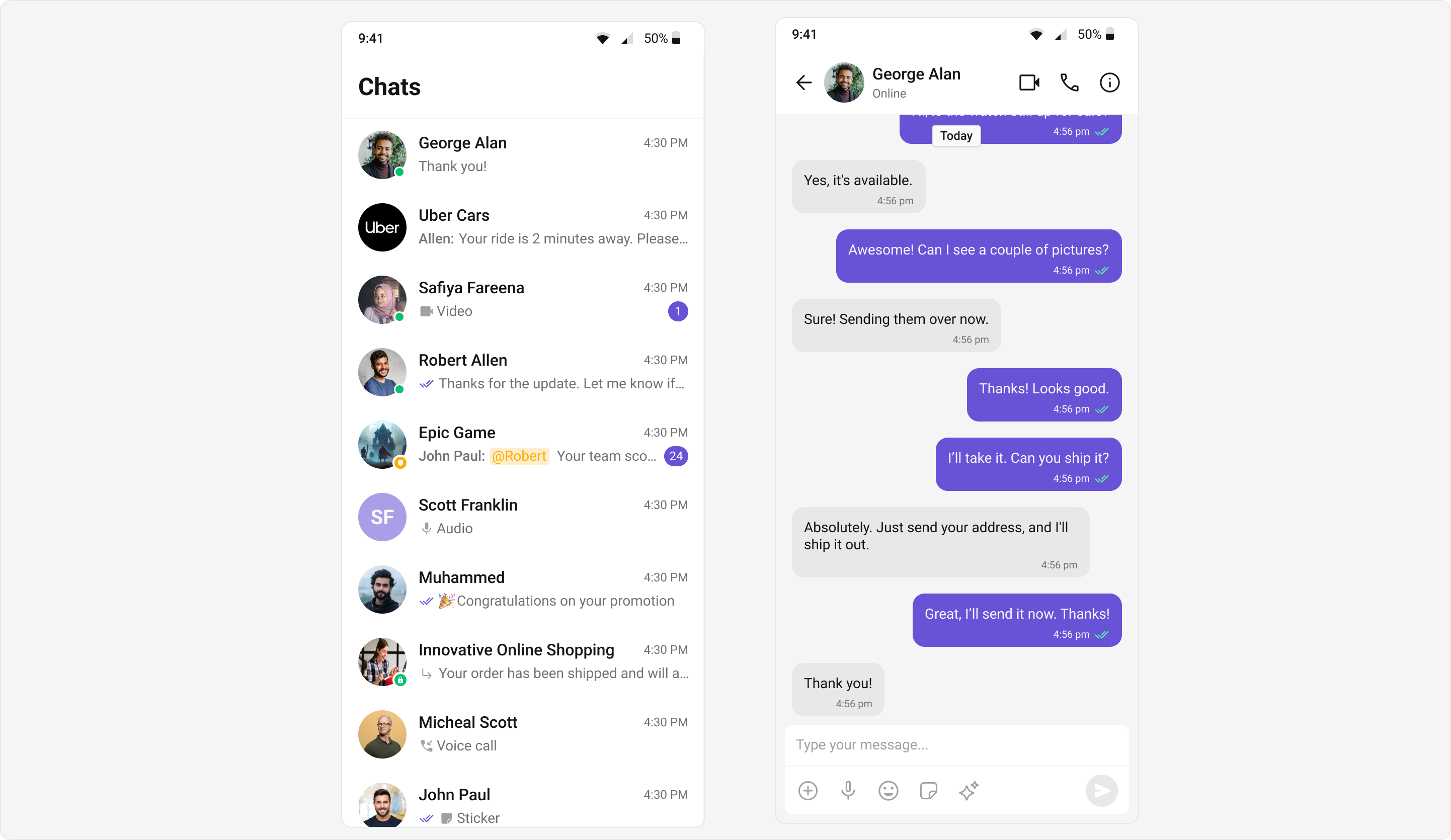 Achieve a vibrant and clean aesthetic with colors optimized for light backgrounds. The CometChatColorPalette offers shades and tints designed to ensure readability and contrast in bright environments.