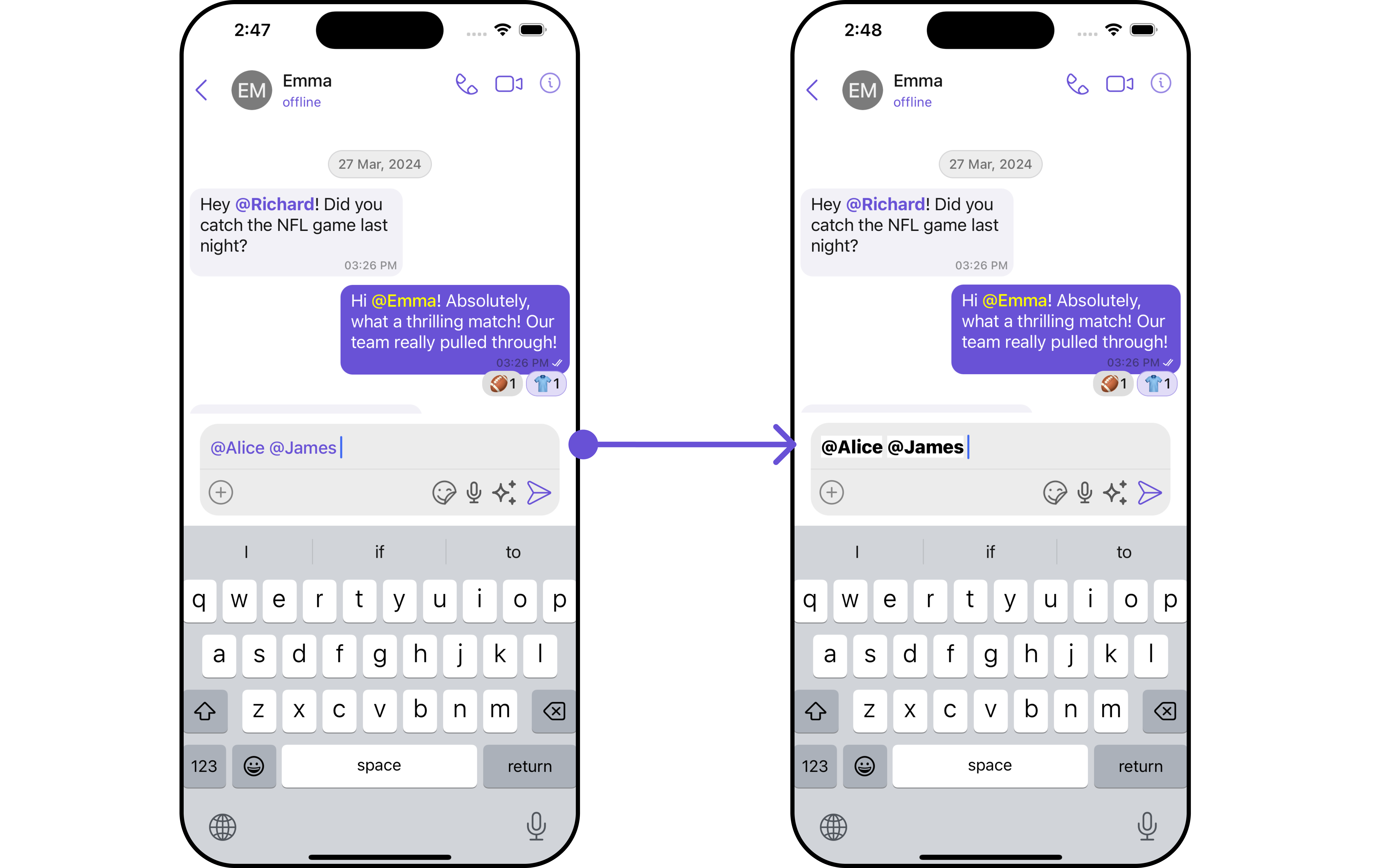 | Set DisableMentions | Enables/Disables user mentions in message composer input field. | .set(disableMentions: Bool) |