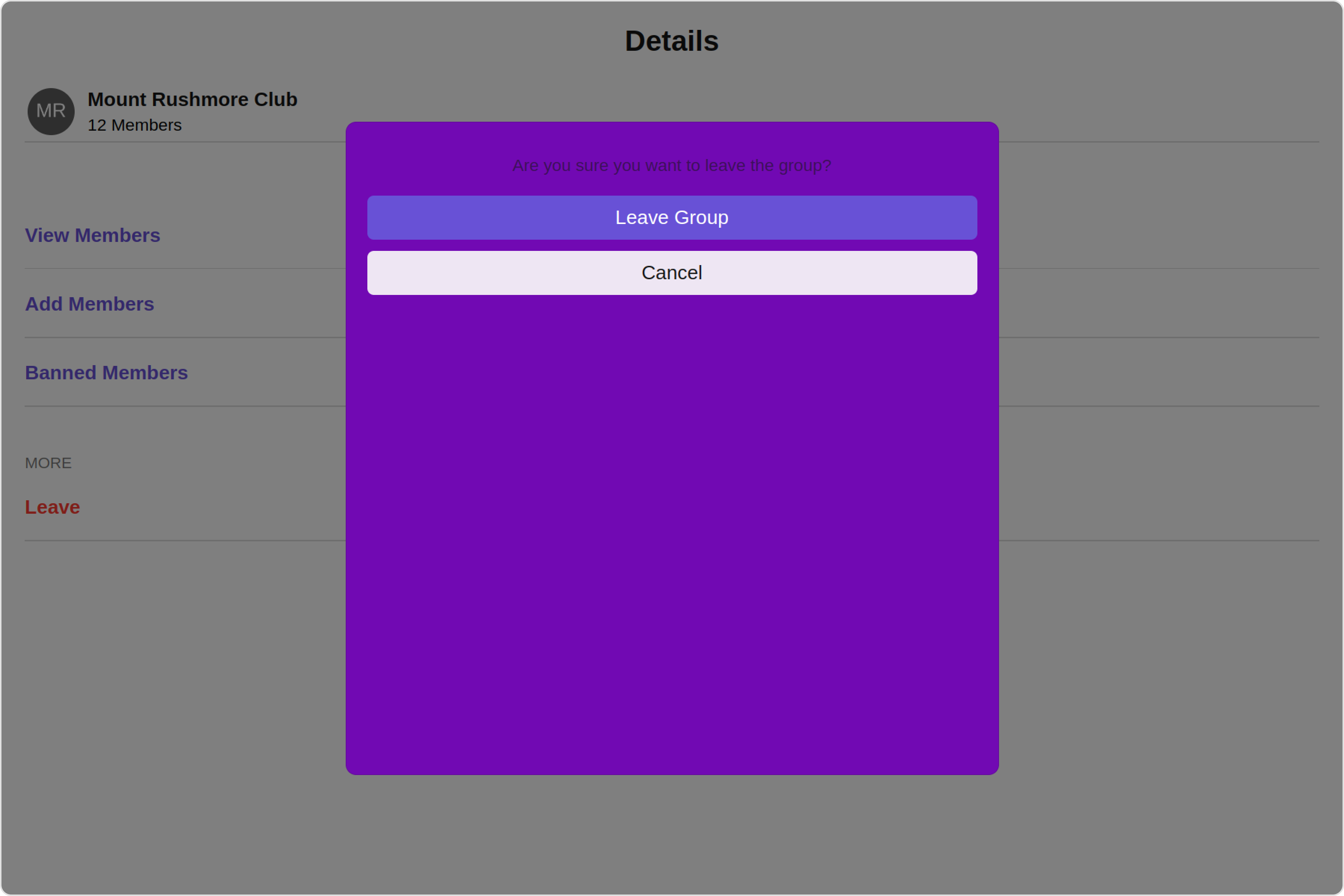- Group Actions: This offers actions related to the group, such as leaving the group, or deleting the group.
